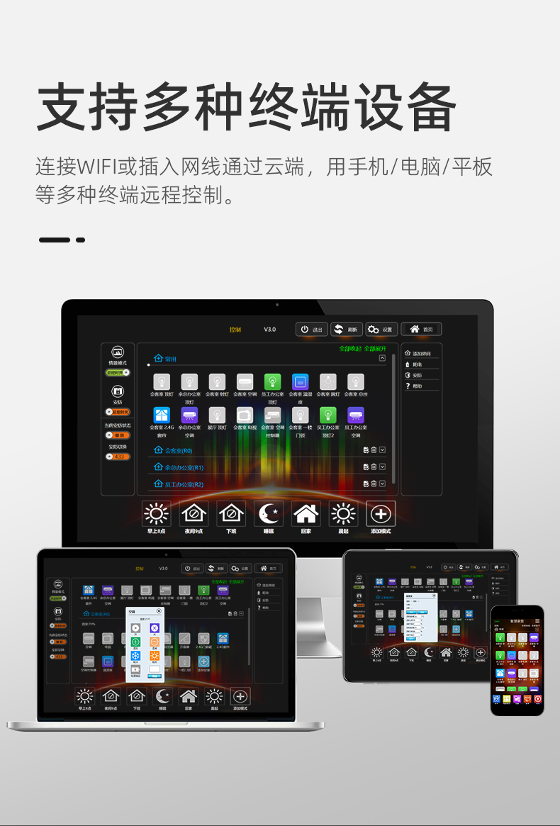 支持6萬多臺設備,燈光、空調、電視、熱水器飲水機、窗簾、幕布、投影儀等