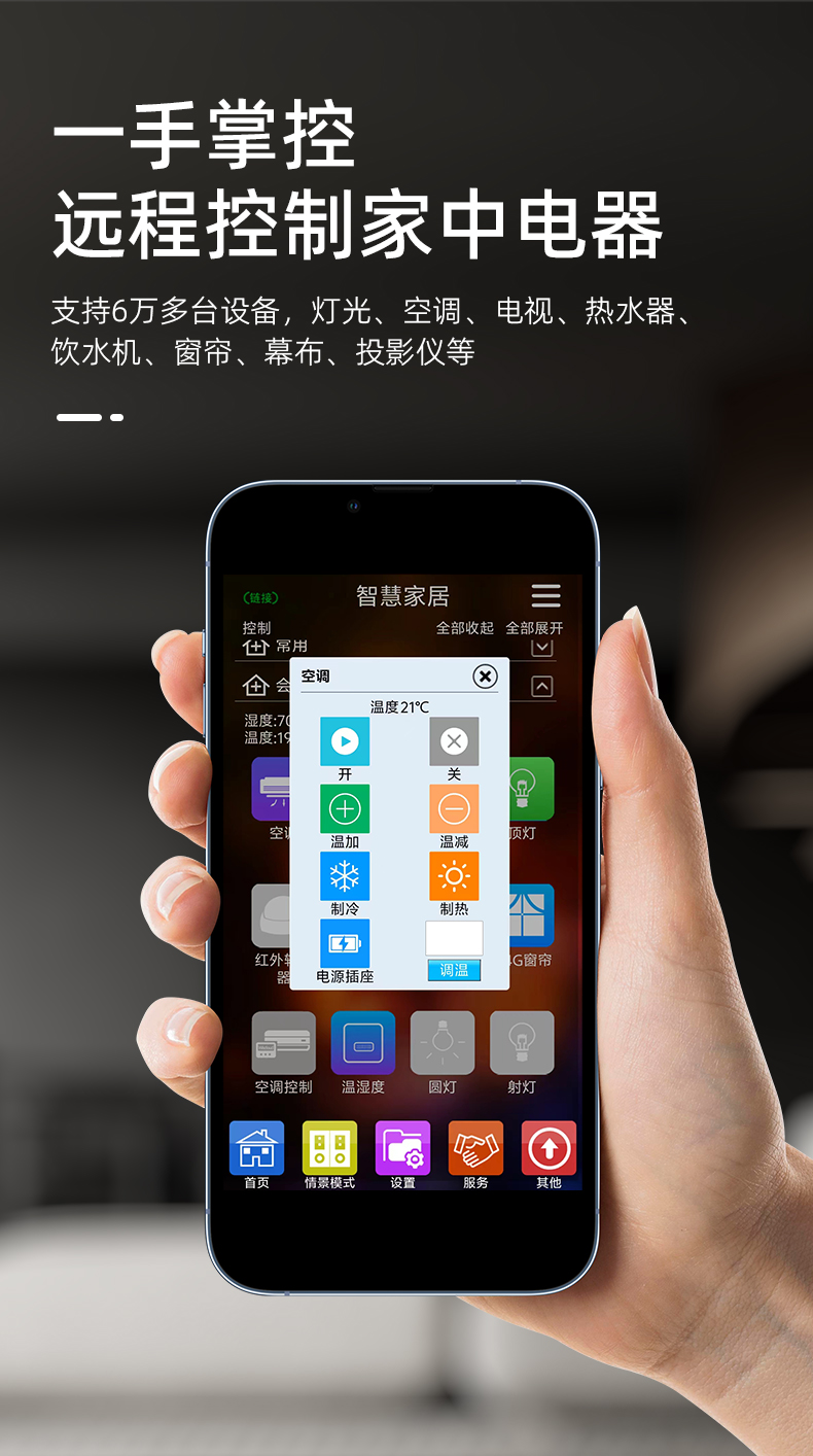 無需布線即可控制一棟樓的燈光/空調/電視/熱水器/飲水機/窗簾/幕布/投影儀等6萬多臺設備