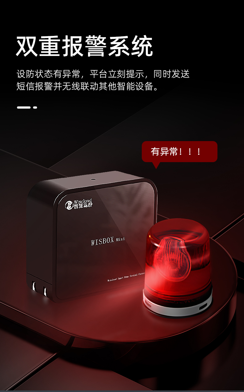 設防狀態有異常,平臺立刻提示,同時發送短信報警并無線聯動其他智能設備。