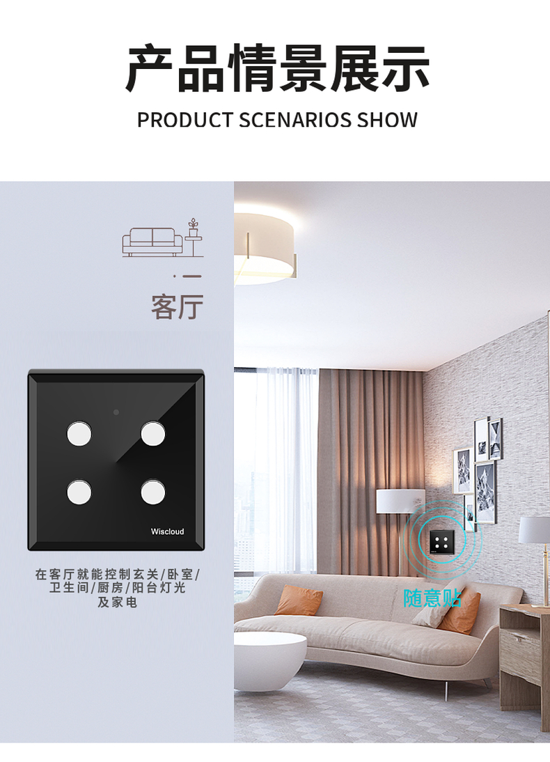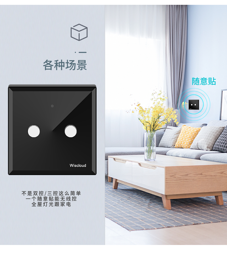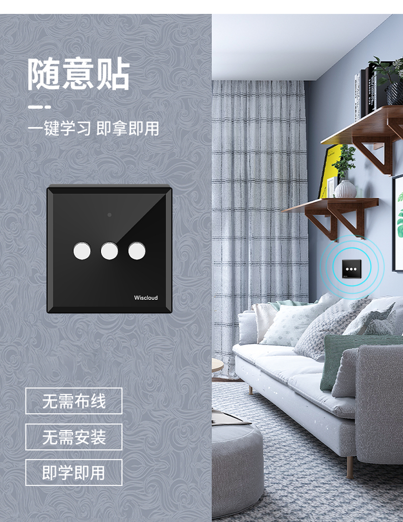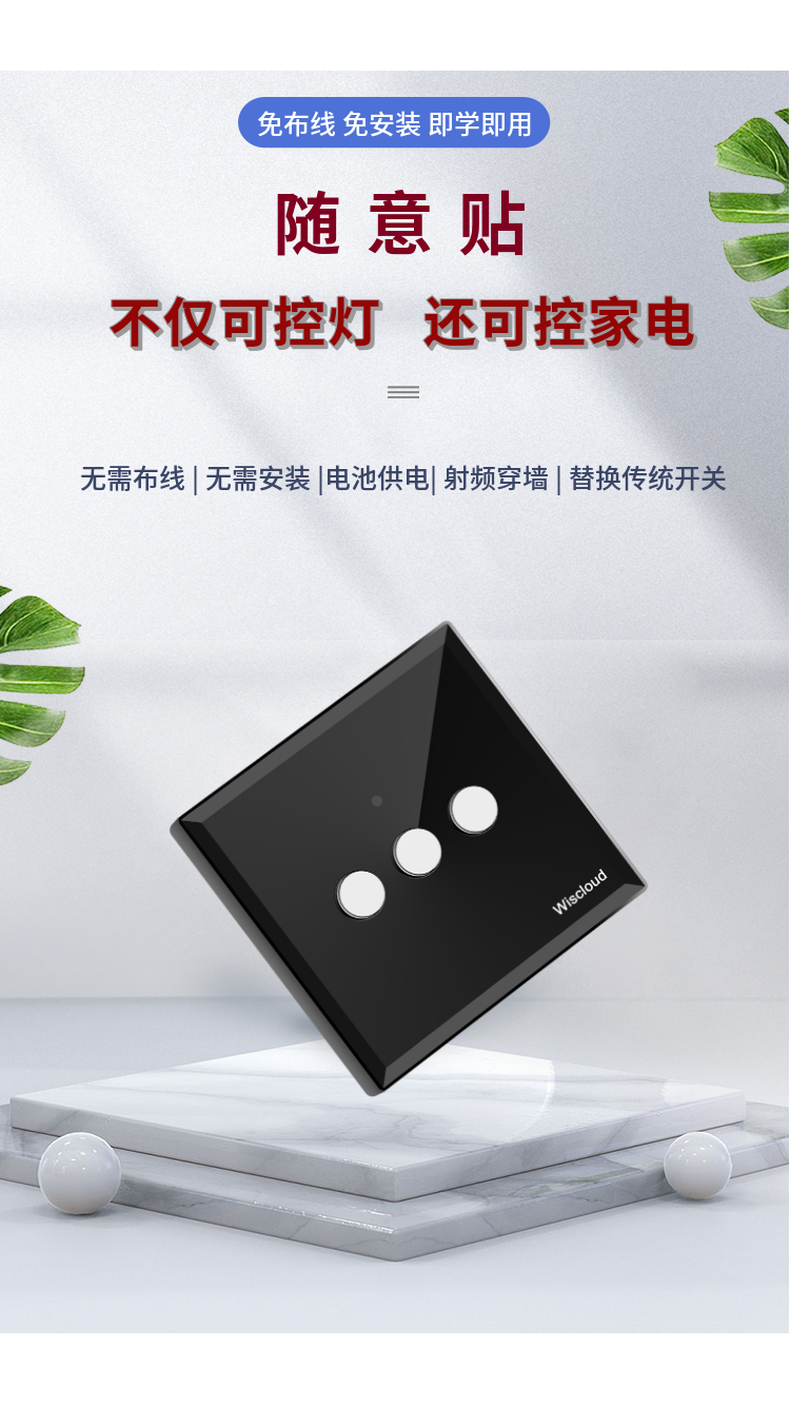 無需布線|無需安裝|電池供電|射頻穿墻|替換傳統(tǒng)開關(guān)
