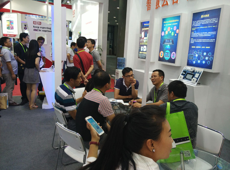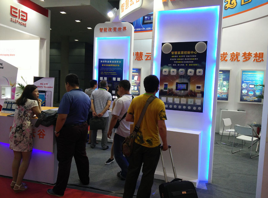 展會的第一天,星云天啟36平方米的特裝展位前就吸引了眾多前來參展的同行、潛在客戶、媒體以及各行各業人士,公司展出的產品包括智慧家居控制中心、智能遙控觸摸開關、智能傳感器等智慧家居系列產品,以及工業自動化控制系列產品。公司參展人員主要通過實物現場演示方式,對公司展出的展品做了介紹講解。公司36平方米的特裝展臺造型奇特,展臺標語口號鮮明,從而以多種視覺傳播方式展示了公司品牌形象與產品。