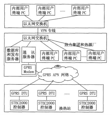 通訊網絡承擔工作站與各個現場控制站之間的數據傳輸, 數據交換, 是整個監控項目的橋梁, 是保證熱網監測系統正常運行的關鍵,本系統采用GPRS無線通訊。