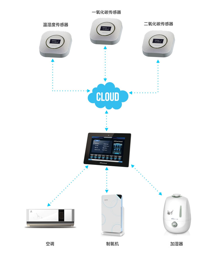 星云天啟針對家庭環境質量監測研發出了多款家用空氣質量檢測器,如二氧化碳傳感器、甲醛/笨傳感器、溫濕度傳感器等。能夠實時監測家中空氣質量,對家中的二氧化碳以及有害氣體、PM2.5、溫濕度等進行實時監測,當監測到空氣質量不合格時,可聯動家中空調、空氣凈化器、加濕器、開窗器等,根據檢測的結果進行通風、加氧、除濕等自動調整,為用戶營造出良好的生活環境。