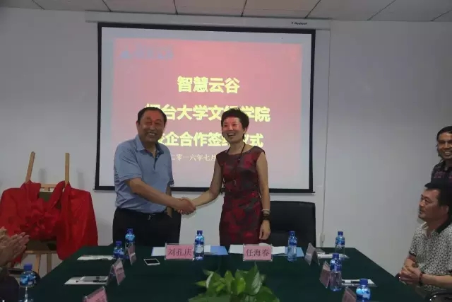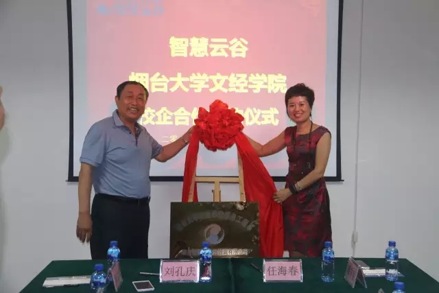 最后,星云天啟董事長任海春與煙臺大學文經學院副院長劉孔慶簽署校企合作協議并舉行授牌儀式。