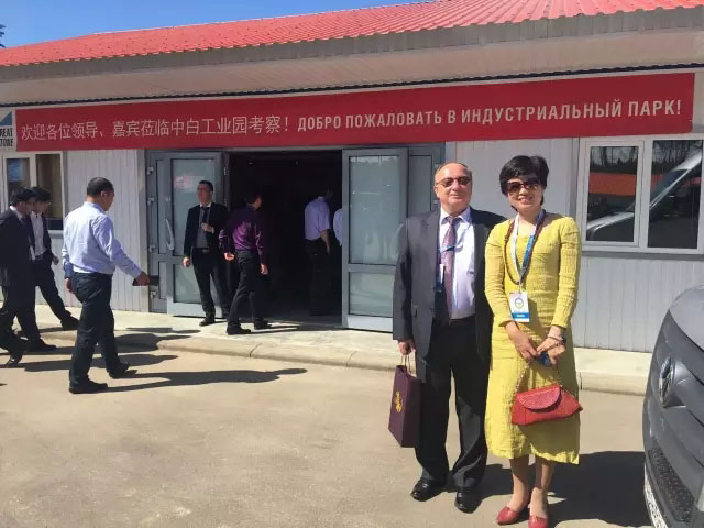 (圖為謝尤卡•尤里與任董事長參觀中白工業(yè)園合影)