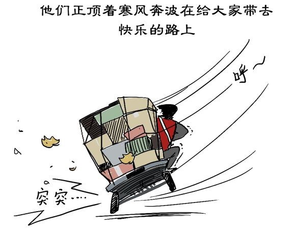 越近年關,冰雪天氣不斷,快遞員們每日在超負荷的工作量和惡劣的天氣下工作,連休息都是奢侈的。我們更應該多給他們一些體諒,說聲您辛苦了!