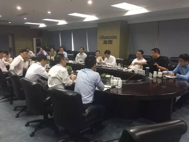 在萊西市委市政府領導的一行參觀學習了海信集團之后,第二天即2017年6月4日,海信集團副總裁、海信網絡科技公司董事長陳維強率領海信網絡科技山東分公司總經理張四海及海信智慧家居事業部負責人到達星云天啟物聯網研發基地進行實地考察。