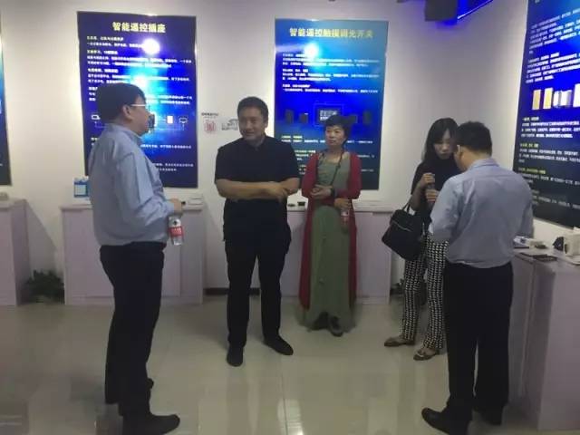 海信集團來訪的貴賓對星云天啟自主核心的智慧家居控制中心、無線聯動多控智能開關、智慧魔盒及人工智能新風機等一系列產品紛紛贊譽有加。