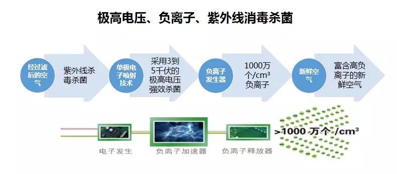 消:高壓放電+負(fù)離子+紫外線殺毒除菌