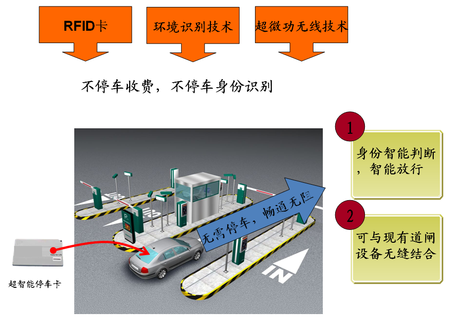 RFID具有不停車收費,抬桿,方便、快捷、上檔次。