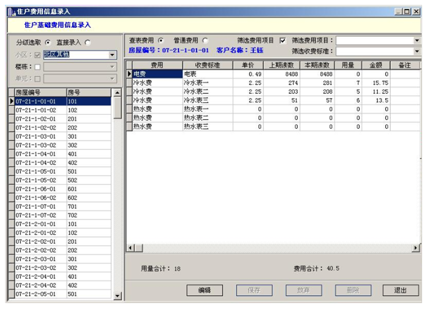 該系統對納入收費管理的兩表進行電子收費管理,提供網上應繳費用的查詢、定期催繳,對沒有上網的用戶提供電話查詢或者到社區管理中心進行查詢,具有收費的登記、轉賬、統計功能,及收費項目、計費方式的變更登記等功能。