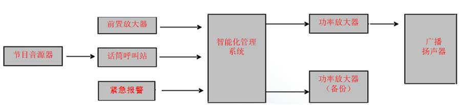 3、廣播對象地域范圍較寬(如城市廣播),采用模擬傳輸線纜過長,可選用網絡式、總線式。