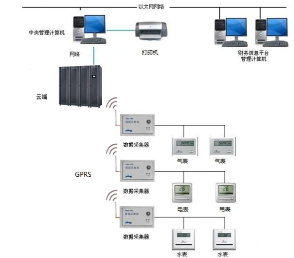 數據采集器與管理中心電腦主機通信,管理中心可計費、打印,也可利用銀行的數據網絡傳到各職能管理部門,實現電子自動抄表。